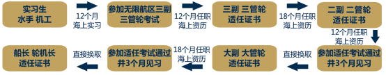 大連譽洋洲際船舶管理有限公司/大連海事大學繼續教育學院 2020年招生簡章(校企合作訂單培養) 大連海事大學概況 大連海事大學(原大連海運學院)是交通運輸部所屬的全國重點大學,是國家“211工程”重點建設高校、國家“一流學科”建設高校,是交通運輸部、教育部、國家海洋局、遼寧省人民政府、大連市人民政府共建高校。學校素有“航海家的搖籃”之稱,是中國著名的高等航海學府,是被國際海事組織認定的世界上少數幾所“享有國際盛譽”的海事院校之一。 大連海事大學繼續教育學院其前身始建于1956年,1962年正式招生。1992年9月在原成人教育部和交通部大連船員學校的基礎上組建成立了成人教育學院。2005年高等教育自學考試并入成人教育學院,學院更名為繼續教育學院。2010年大連海事大學船員培訓中心設在了學院。學院代表學校承擔了統籌規劃和管理成人高等學歷教育和非學歷教育培訓工作,兼有管理職能和辦學職能。 學院將學歷教育和職業技術教育有機結合,為國內外培養了大批德才兼備的航運和其他各類應用型人才。學院現開設的學歷教育有航海技術、輪機工程、海事管理、物流管理、船舶與海洋工程(航海技術方向、輪機工程方向)等專業,主要教學形式包括函授教育和自學考試。學院是遼寧省高等教育自學考試船舶與海洋工程(航海技術方向、輪機工程方向)、電子商務、物流管理、法律專業專科及專升本兩個層次的主考學校, 同時也是中國交通協會和教育部考試中心指定的中國物流職業經理資格證書和高等教育自學考試物流管理專業助學單位。學院在全國8個省市設有12個函授站(點) 公司簡介 大連譽洋洲際船舶管理有限公司是經國家監督管理部門批準的具有獨立法人資格的船舶企業,注冊編號:91210202MA105AC93B。 公司經營范圍包括船舶管理和船員派遣業務,各類海事咨詢和海事技術服務,船舶維修業務,船舶租賃,提供船員培訓、代辦各類證書、就業安置業務等。 公司擁有專職管理人員和專職業務人員,成立至今為廣大船東提供優秀船員近千名,船員的業務和素質得到船東的認可,公司的服務意識得到船東的一致肯定,目前公司已與廣大船東建立長期穩定的合作關系。 譽洋洲際將始終秉持“誠信、專業、高效、共贏”的服務理念,以做好船員和船東服務為本,信奉“團結、求實、卓越、創新”的譽洋精神。努力為廣大船東和船員提供滿意、周到的服務。建立跨國、跨地區的全球服務網絡、通過優勢互補提升船舶及船員管理的競爭力。打造優質海運服務企業。 專業介紹 航海技術:航海技術專業原為海洋船舶駕駛專業,主要培養符合國際海事組織(IMO)制定的《海員培訓、發證和值班標準國際公約》(STCW)、國家教育方針和國際國內相關法規的要求,綜合素質好、安全與環保意識強,具有較強的實踐動手能力、英語運用能力、業務能力和良好的團隊協作精神,具有國際競爭能力的高級航海技術人才。 主要專業課程:航海學、航海氣象與海洋學、航海儀器、電子海圖顯示與信息系統、船舶結構與設備、海上貨物運輸、船舶操縱、船舶值班與避碰、船舶管理、航海英語、GMDSS設備及通信業務、船舶操縱、避碰與駕駛臺資源管理、航海英語聽力與會話、雷達操作與應用、航線設計、輪機概論、計算機文化基礎、遠洋運輸業務與海商法、高等數學等 輪機工程:輪機工程專業主要培養符合國際海事組織(IMO)制定的《海員培訓、發證和值班標準國際公約》(STCW)、國家教育方針和國際國內相關法規的要求,綜合素質好、安全與環保意識強,具有較強的實踐動手能力、英語運用能力、業務能力和良好的團隊協作精神,能勝任現代船舶機電管理技術要求,具有國際競爭能力的高級輪機管理技術人才。 主要專業課程:主推進動力裝置、輪機維護與修理、船舶輔機、船舶電氣與自動化、船舶管理、輪機英語、輪機英語聽力與會話、機械制圖、電工學、材料工藝學、機艙資源管理、航海概論、動力設備操作、動力設備拆裝、船舶電工工藝和電氣設備、金工工藝、計算機文化基礎、高等數學等。 航海類專業學生在校期間主要完成基本安全培訓(Z01)、精通救生艇筏和救助艇培訓(Z02)、高級消防培訓(Z04)、精通急救培訓(Z05)、保安意識培訓(Z07)和負有指定保安職責人員的培訓(Z08)以及值班水手、值班機工等崗位適任培訓,通過國家海事局相關考試后獲得相應的專業證書。 航海類專業學生,畢業時可直接參加沿海航區三副/三管輪適任證書考試,考試通過后獲得三副/三管輪證書?;虍厴I生具有12個月及以上的相應海上實習資歷后,參加無限航區三副、三管輪適任證書的考試,考試通過后獲得無限航區三副、三管輪適任證書; ●航海類專業學生職務晉升框圖: 培養模式介紹 規范管理、專業服務,引領學生專業化發展,深化產教融合、校企合作、專業培養、職業培訓和學歷提升教育貫通銜接,為航海業培養高技能人才。培訓證書、技能證書和學歷證書“三證結合”,培養學生掌握基本的專業知識,具備相應的行業準入資格或從業資質。具有較強的實踐應用能力和較高的綜合素質。 學歷教育 學員入學后,根據國家和教育行政管理部門政策,采取“自愿報考、自主選擇、自行付費”的原則參加學歷教育??蛇x擇大連海事大學成人高等教(育函授本科)學制:5年。 就